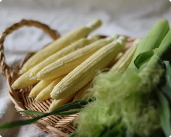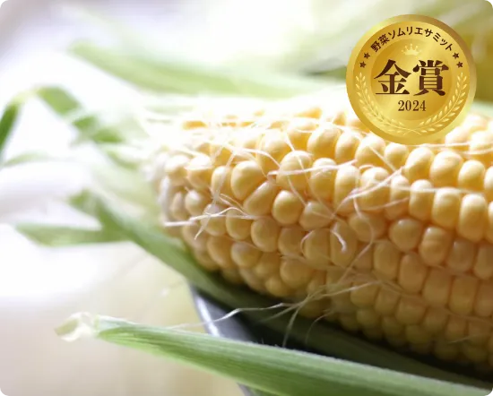 杉中園芸の人気品種「味来(みらい)」のヤングコーンは、2025年の野菜ソムリエサミットで銀賞を受賞した、プロも認める逸品です。通常トウモロコシは1本のみ収穫しますが、こちらは1本目を完熟トウモロコシとして育て、2本目を若採り。この丁寧な手間とこだわりが、他にはない香りとみずみずしさを引き出しています。