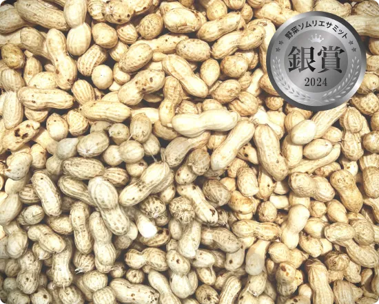 茹でて食べるのに最適な品種「郷の香」は、ふっくらとやわらかい実にほんのり広がる自然な甘味が特長です。しっかりと実が詰まっていて食べ応えがあり、茹で落花生ならではのほくほく食感を楽しめます。2024年の野菜ソムリエサミットで銀賞を受賞した、自信をもってお届けできる一品です。